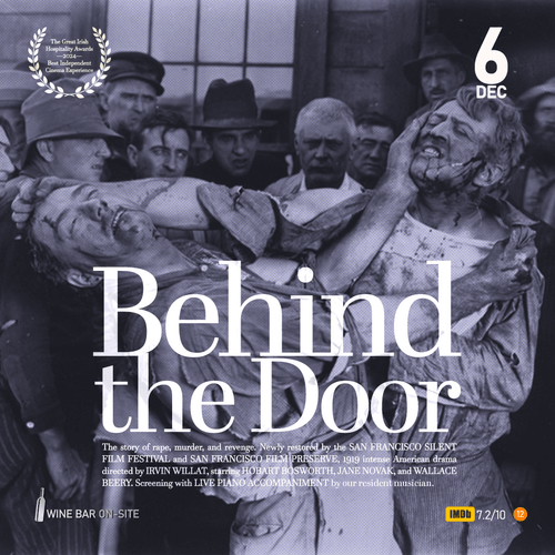 We are starting December screenings with the gripping tale of rape, murder, and revenge. Newly restored by the San Francisco Silent Film Festival. Presenting the 1919 war drama BEHIND THE DOOR, directed by Irvin Willat and featuring Hobart Bosworth, Jane Novak, and Wallace Beery.